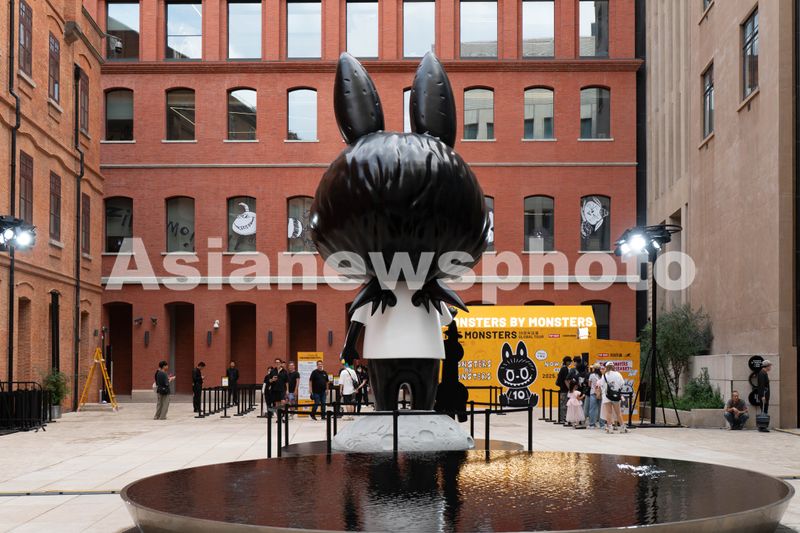 2025年10月15日,上海外滩源正在举办LABUBU十周年巡展,广场上的拉布布雕塑吸引众多粉丝打卡拍照。