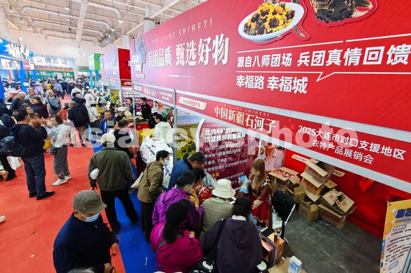 2025年10月17日,众多市民在辽宁大连国际农业博览会上参观选购农副产品。