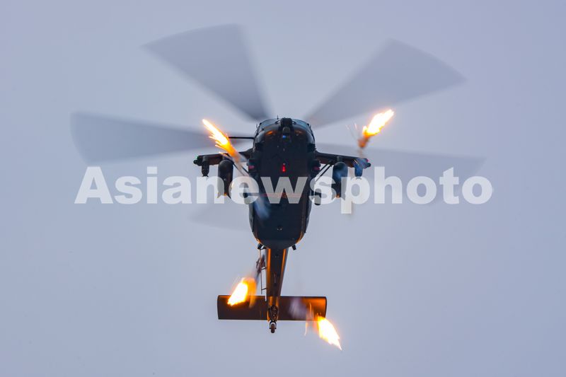 2025年10月16日,直-20T“突击”型直博会首秀,展示释放干扰弹。