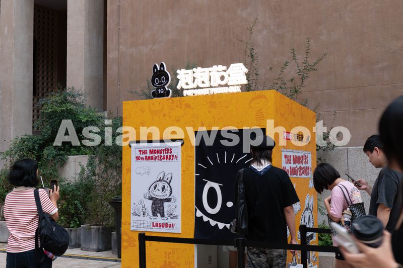 2025年10月15日,上海外滩源正在举办LABUBU十周年巡展,广场上的拉布布雕塑吸引众多粉丝打卡拍照。