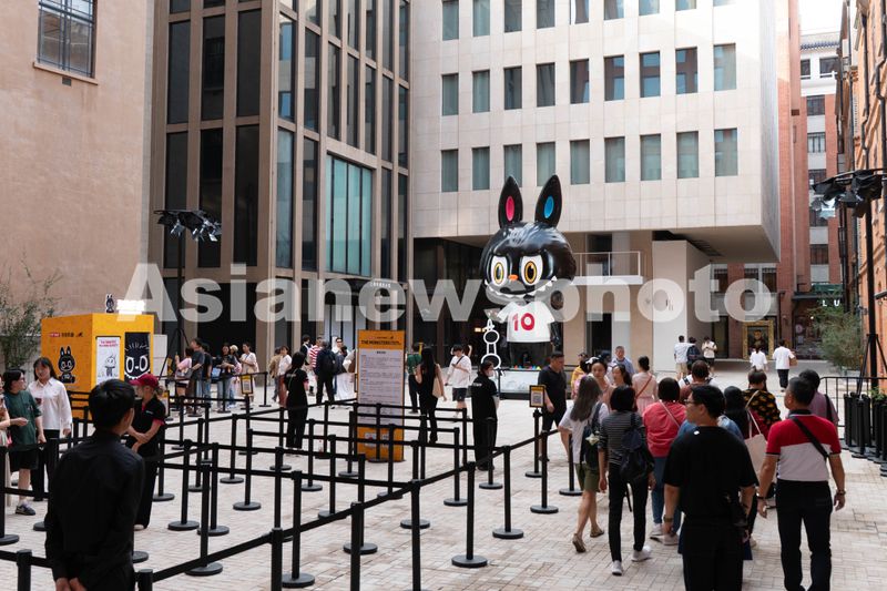 2025年10月15日,上海外滩源正在举办LABUBU十周年巡展,广场上的拉布布雕塑吸引众多粉丝打卡拍照。