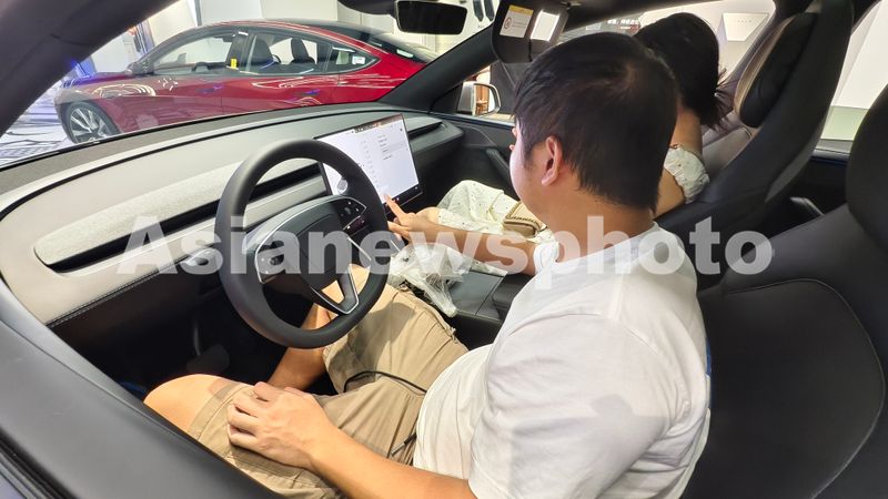 2025年10月19日,上海特斯拉品牌授权店,六座版Model Y L新能源电动汽车的智慧座舱吸引亲子家庭消费者体验。