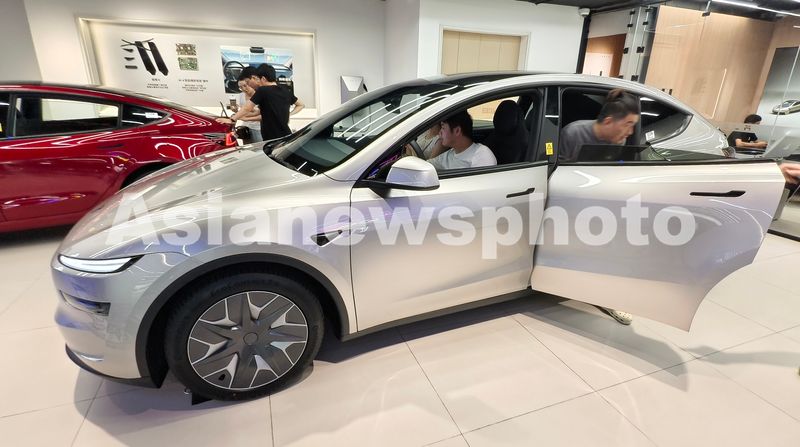 2025年10月19日,上海特斯拉品牌授权店,六座版Model Y L新能源电动汽车的智慧座舱吸引亲子家庭消费者体验。