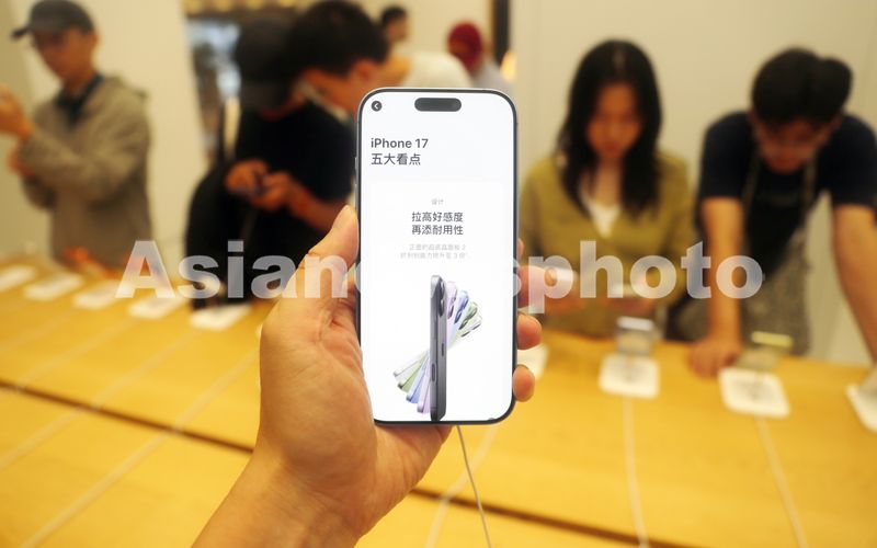 2025年10月22日,上海,苹果旗舰店吸引众多消费者来体验新款iPhone 17手机。