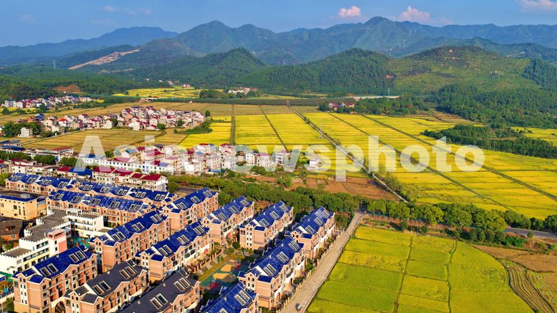 图片说明:10月27日,江西省吉安市吉水县醪桥镇,高标准农田里稻谷金黄,与山丘、民居相映成景,构成一幅丰收时节的和美乡村画卷。