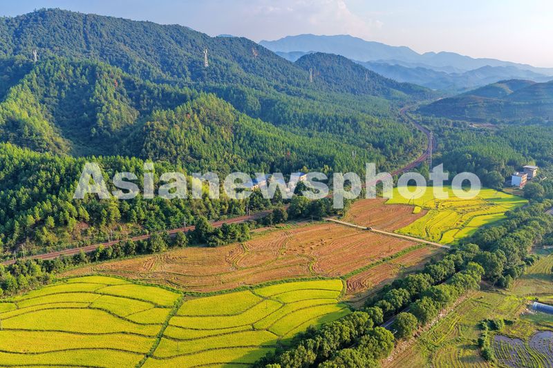 图片说明:10月27日,江西省吉安市吉水县醪桥镇,高标准农田里稻谷金黄,与山丘、民居相映成景,构成一幅丰收时节的和美乡村画卷。