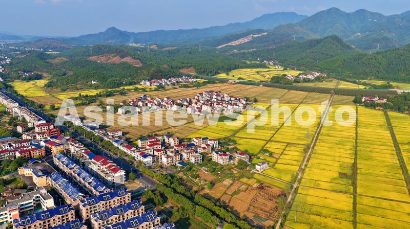图片说明:10月27日,江西省吉安市吉水县醪桥镇,高标准农田里稻谷金黄,与山丘、民居相映成景,构成一幅丰收时节的和美乡村画卷。