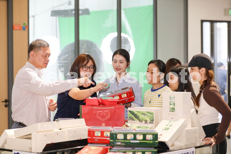 2025年10月31日,位于福建省福州市职工创新创业创造中心的福马产业合作园城市中心孵化服务园成果展厅,与会企业工会代表正在和台商(左一)交流展品特色。