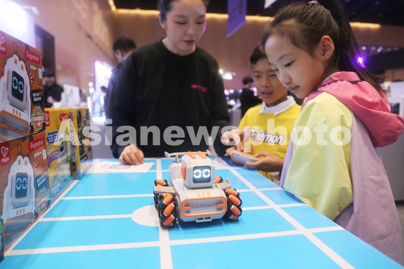 图片说明:2025年10月27日,上海西岸国际科技消费嘉年华上,趣味机器人玩具吸引小朋友。