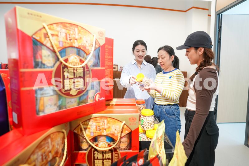 2025年10月31日,位于福建省福州市职工创新创业创造中心的福马产业合作园城市中心孵化服务园成果展厅,与会企业工会代表正在观看台湾在闽创业项目产品。