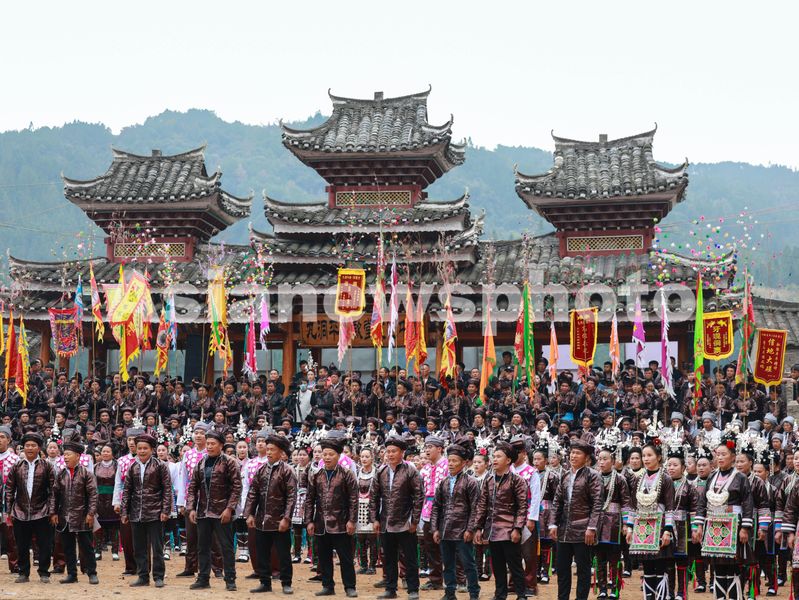 2025年11月1日,在贵州省从江县往洞镇九洞平楼牛塘,侗族同胞在唱侗族大歌跳多耶舞。