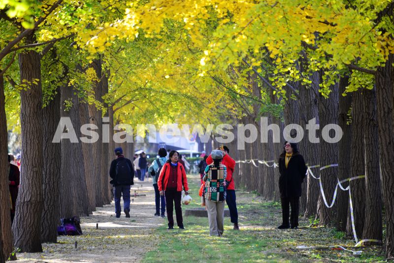 北京:钓鱼台银杏大道秋景吸引游人