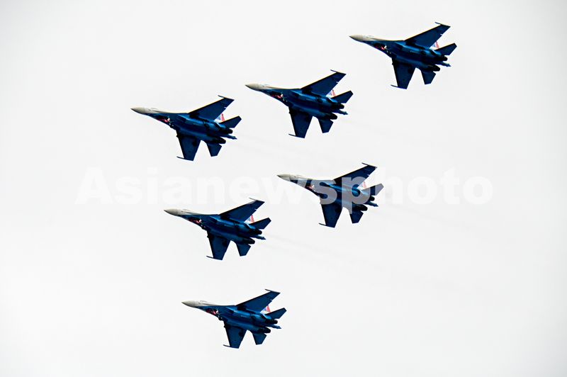 2025年11月1日,在江西省南昌市瑶湖机场,俄罗斯“勇士”飞行表演队特技飞行表演。