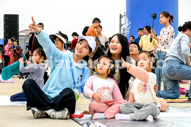 2025年11月1日,在江西省南昌市瑶湖机场,小朋友在观看飞行表演。