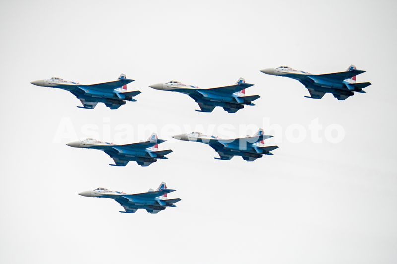 2025年11月1日,在江西省南昌市瑶湖机场,俄罗斯“勇士”飞行表演队特技飞行表演。