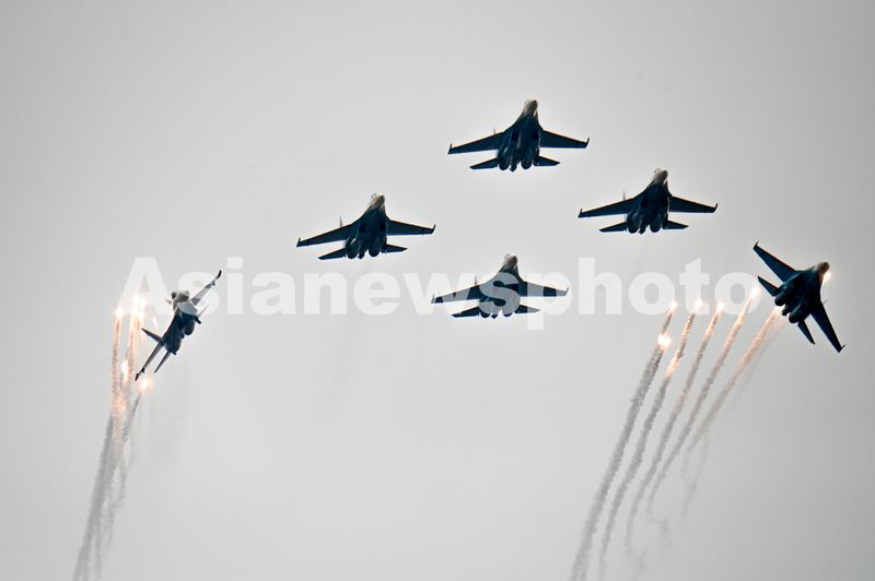 2025年11月1日,在江西省南昌市瑶湖机场,俄罗斯“勇士”飞行表演队特技飞行表演。