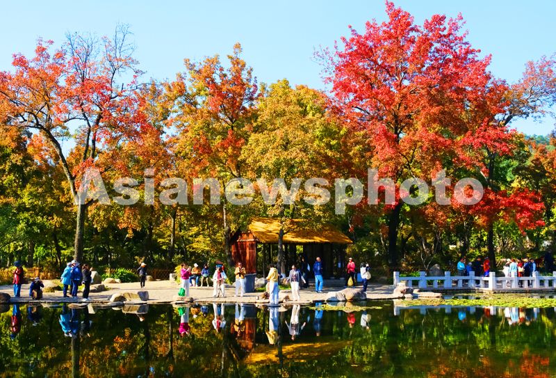 江苏苏州:天平山“五彩枫”景醉游人 查看组图