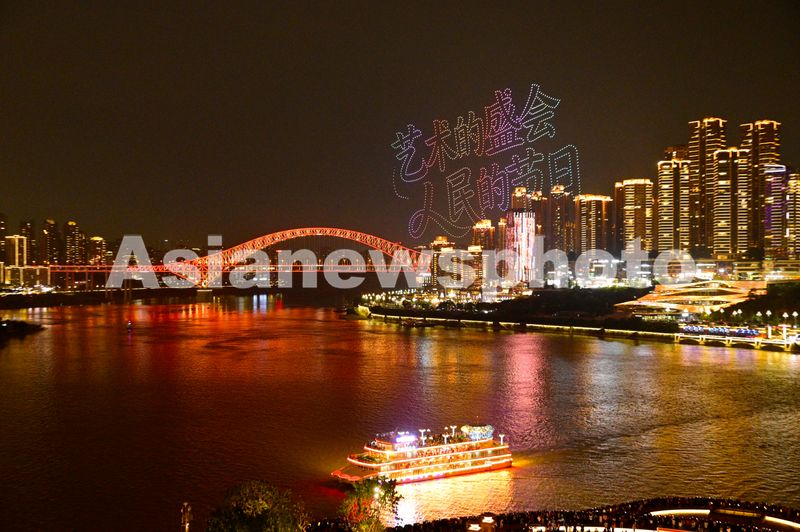 图片说明:2025年11月4日晚,重庆夜色如诗,两江泛起粼粼金光,“艺术的盛会,人民的节日”光影闪耀,尽显节日氛围。