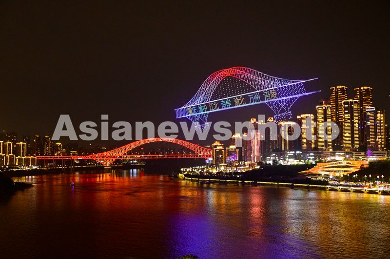 图片说明:2025年11月4日晚,重庆夜空,“艺术之桥”璀璨浮现,重庆六区依次闪耀亮相,诠释文化共生的美美与共。