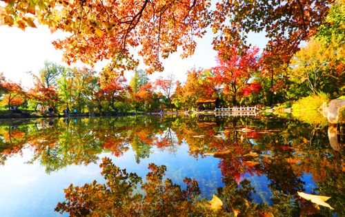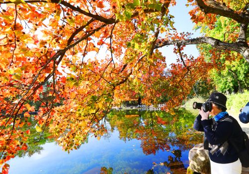 江苏苏州:天平山“五彩枫”景醉游人 查看组图