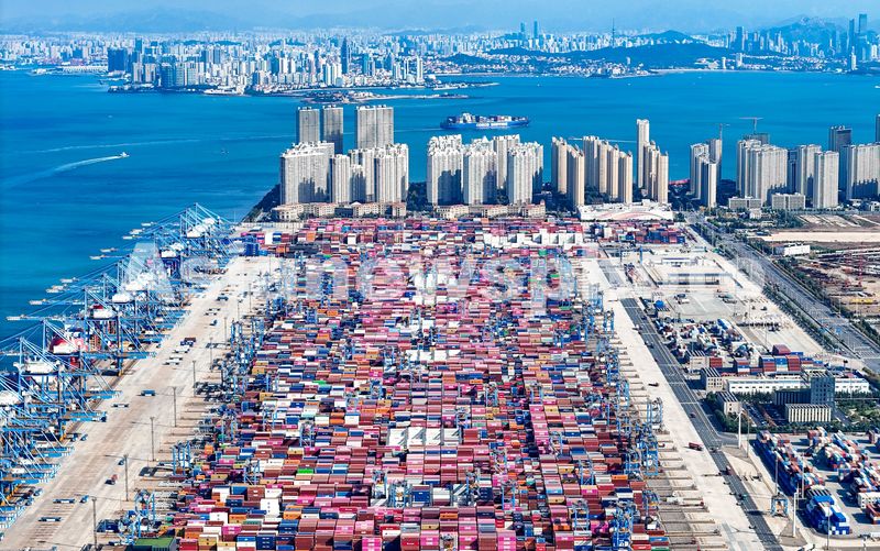 2025年11月5日,在青岛自贸片区,集装箱堆场一派繁忙。