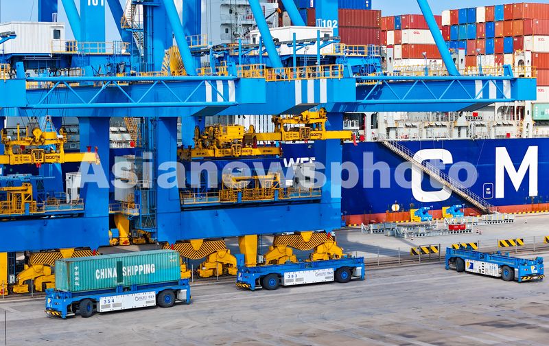 2025年11月5日,在青岛自贸片区,集装箱堆场一派繁忙。