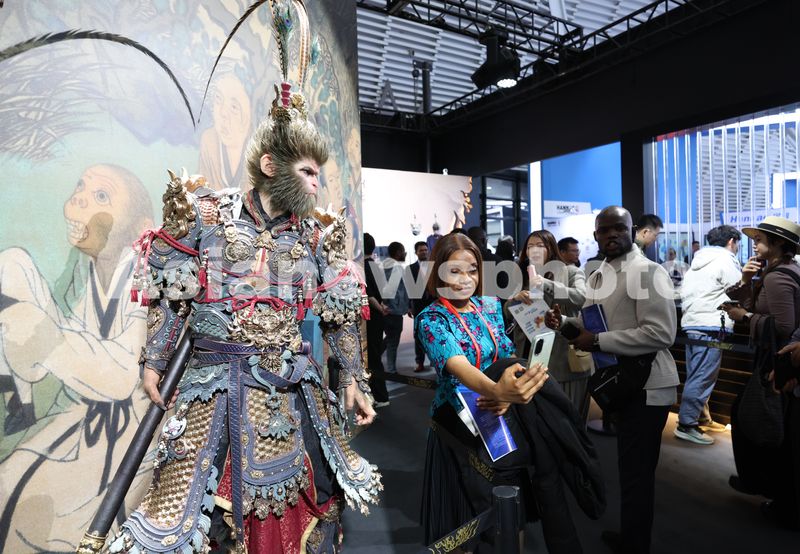 11月6日,与会嘉宾在黑神话悟空展台自拍留影。