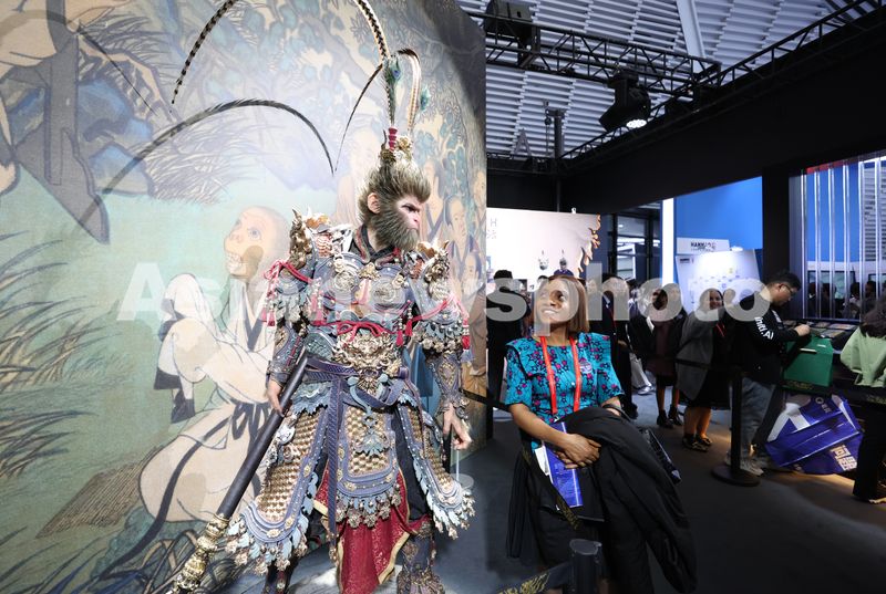 11月6日,与会嘉宾在黑神话悟空展台参观。