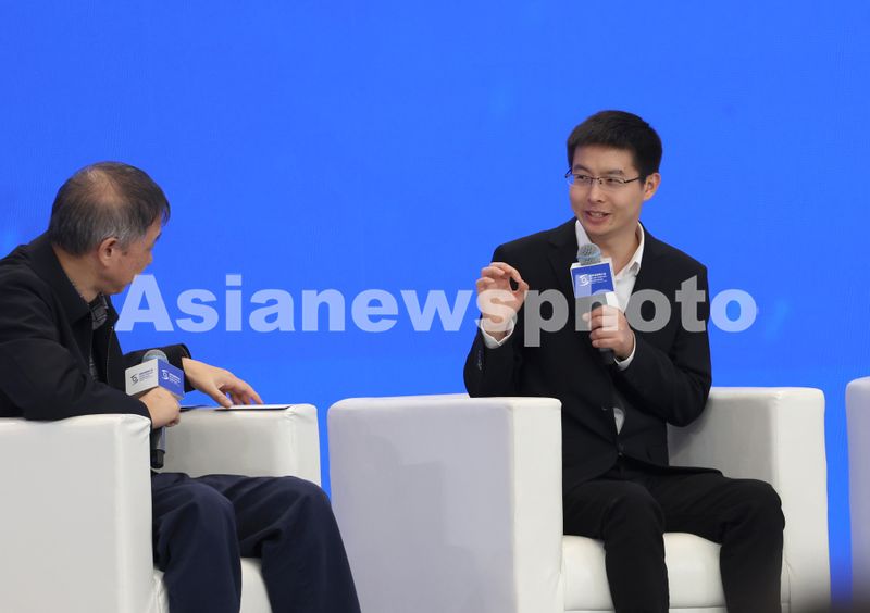 11月7日,宇树科技创始人、CEO、CTO王兴兴(右)发言。