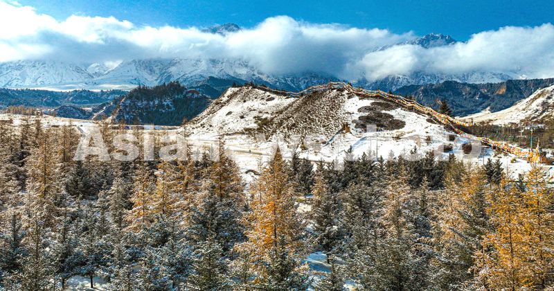 当日是立冬,受冷湿气流影响,祁连山区降下大雪,雪后位于祁连山国家公园甘肃省张掖市肃南裕固族自治县马蹄乡境内的雪山、峡谷、冰川、森林、草甸、丹霞在皑皑白雪映衬下到处银装素裹, 犹如一幅美丽的画卷。