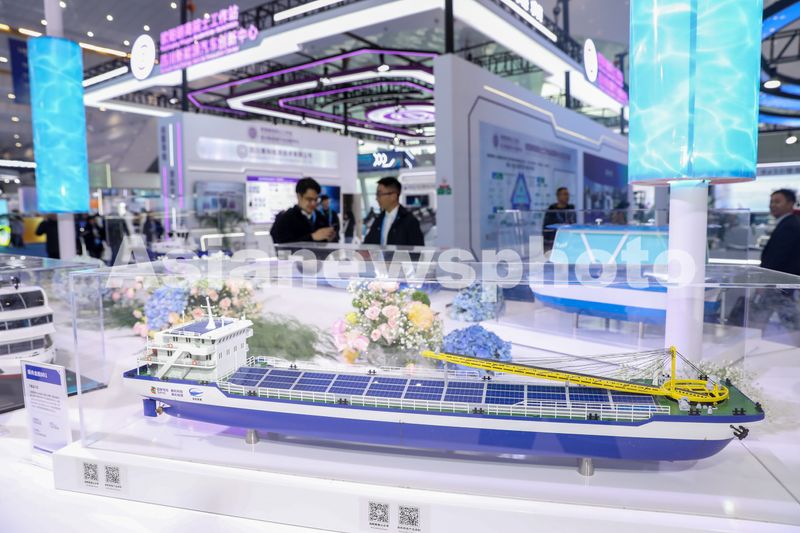 11月12日,在宜宾国际会展中心2025动力电池应用生态展览会,参观者了解电动船舶等相关领域发展情况。