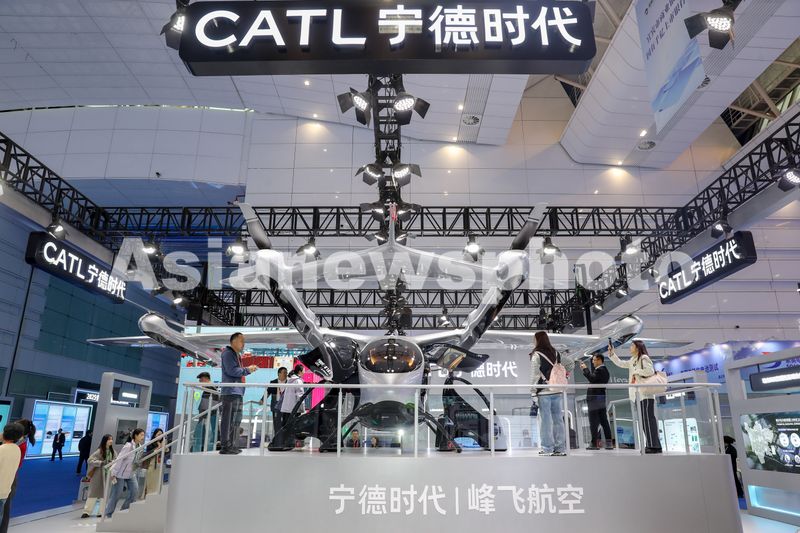11月12日,在宜宾国际会展中心2025动力电池应用生态展览会,参观者在了解电动飞行汽车和低空经济发展情况。