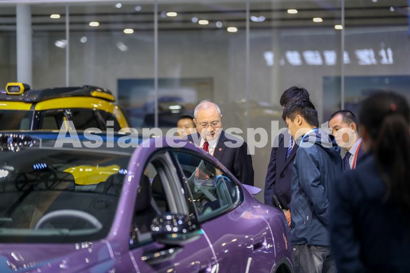 11月12日,在宜宾国际会展中心2025动力电池应用生态展览会,参观者在了解国产新能源汽车。