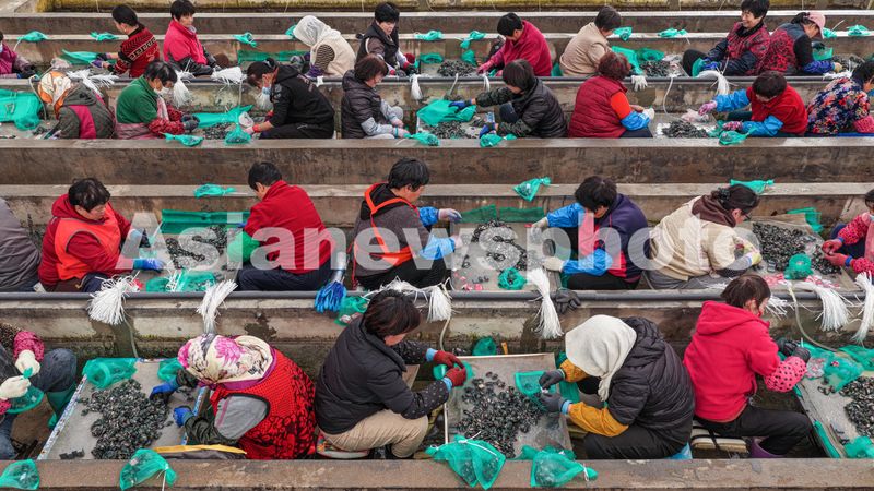 图片说明:2025年11月13日,山东省荣成市爱伦湾鲍鱼港育苗车间内,工人们在开展鲍鱼育苗、分苗、装苗等作业。