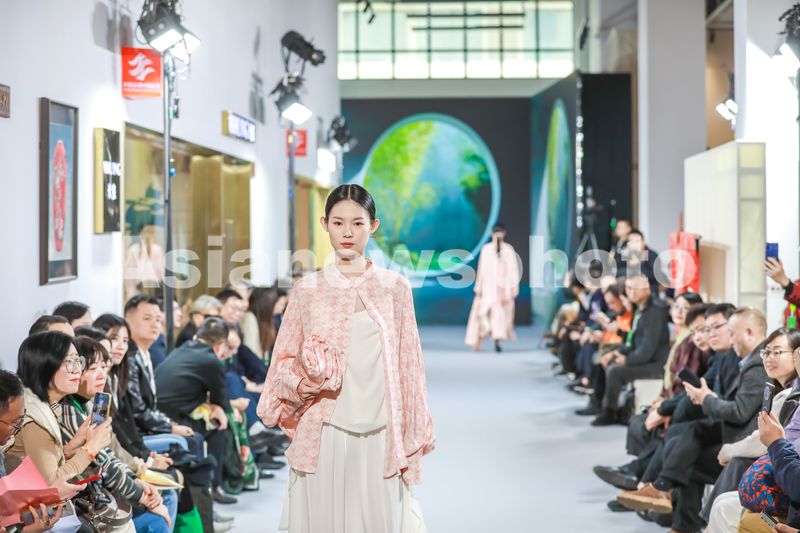 2025年11月12日,位于浙江省湖州市南浔区旧馆街道长三角丝绸文化产业园内,浙江省首届历史经典产业(丝绸)焕新大赛湖州赛区模特穿着真丝服饰正在现场走秀。
