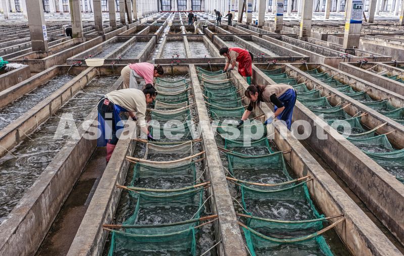 图片说明:2025年11月13日,山东省荣成市爱伦湾鲍鱼港育苗车间内,工人们在开展鲍鱼育苗、分苗、装苗等作业。