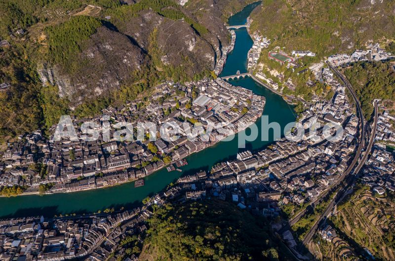 图片说明:2025年11月13日,贵州省黔东南苗族侗族自治州镇远县,航拍镇远古城。