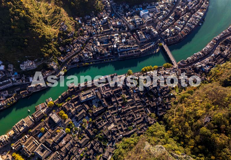 图片说明:2025年11月13日,贵州省黔东南苗族侗族自治州镇远县,航拍镇远古城。