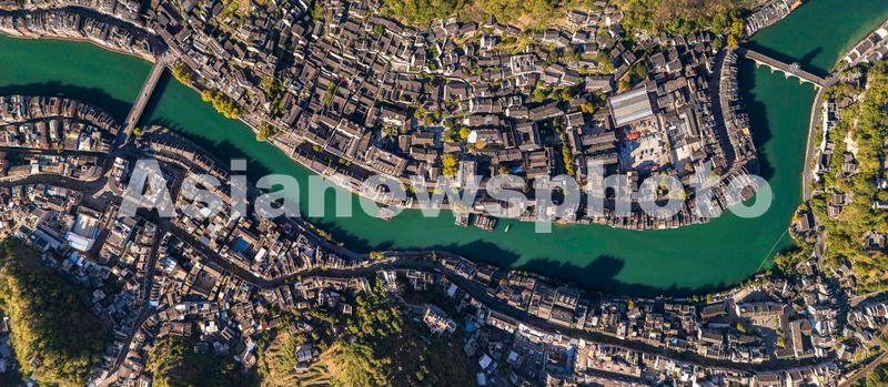 图片说明:2025年11月13日,贵州省黔东南苗族侗族自治州镇远县,航拍镇远古城。