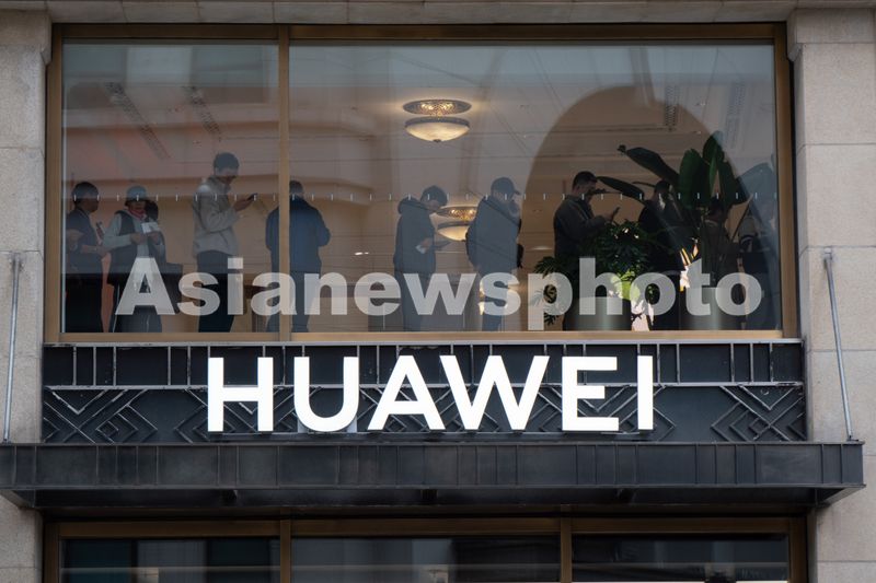 2025年11月17日,上海黄浦区南京路步行街的华为全球旗舰店二层,众多顾客正在排队等待预定华为Mate80系列新品手机。