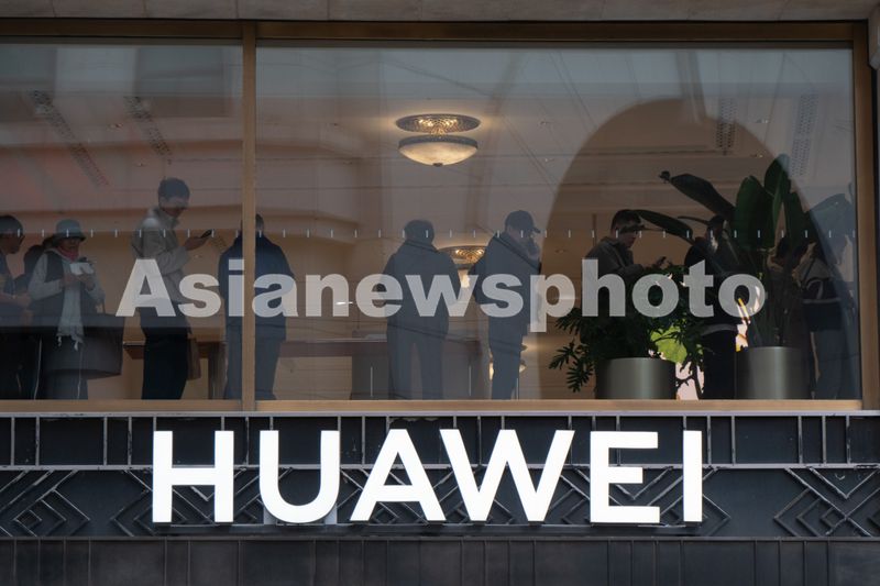2025年11月17日,上海黄浦区南京路步行街的华为全球旗舰店二层,众多顾客正在排队等待预定华为Mate80系列新品手机。