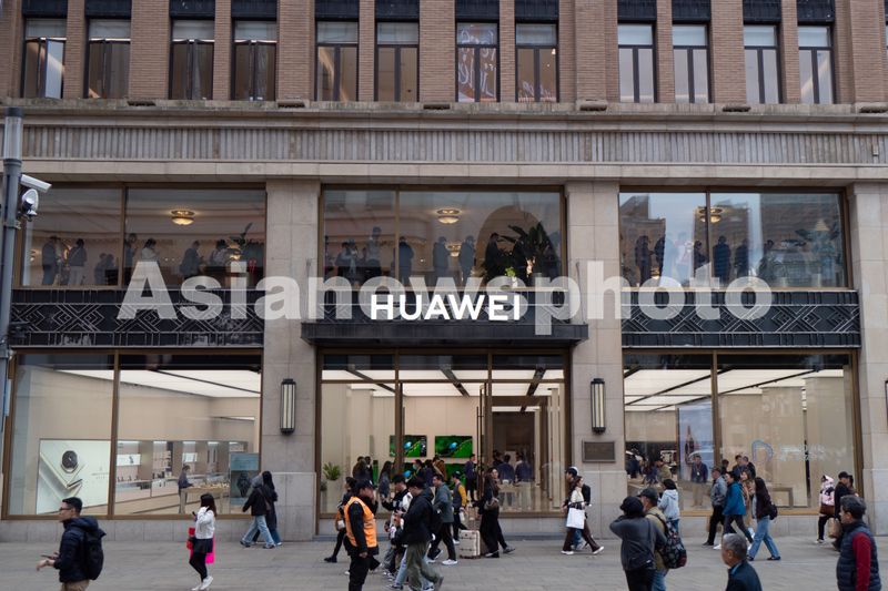 2025年11月17日,上海黄浦区南京路步行街的华为全球旗舰店二层,众多顾客正在排队等待预定华为Mate80系列新品手机。