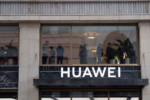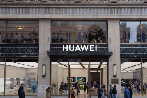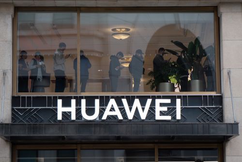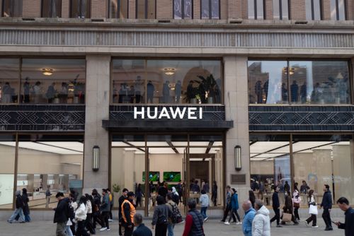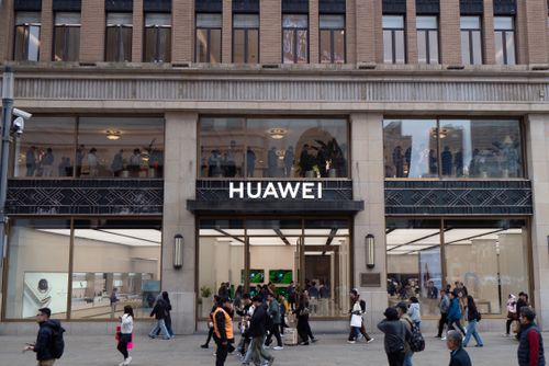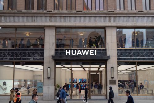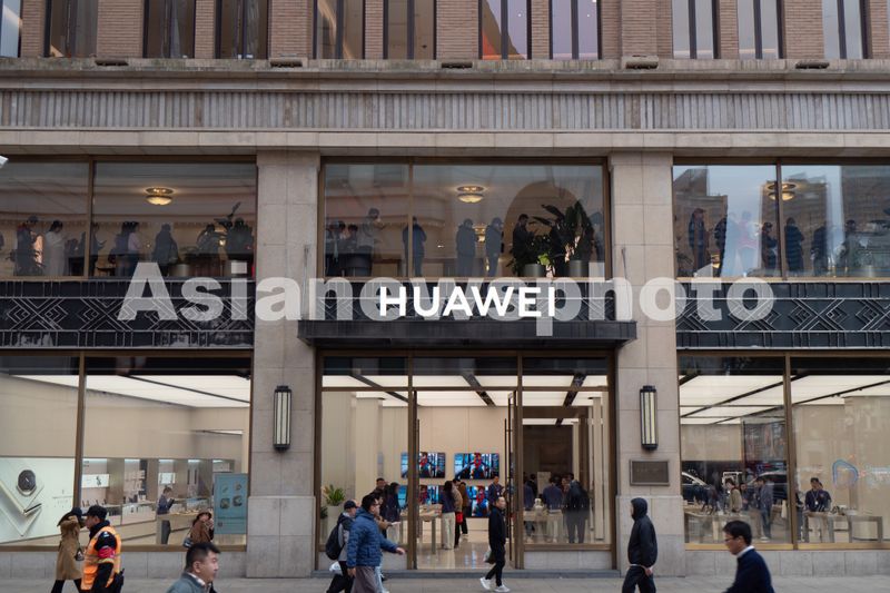 2025年11月17日,上海黄浦区南京路步行街的华为全球旗舰店二层,众多顾客正在排队等待预定华为Mate80系列新品手机。