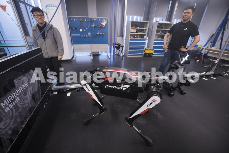 2025年11月18日,在浙大国际科创中心拍摄到的四足仿生机器人“黑豹2.0”。