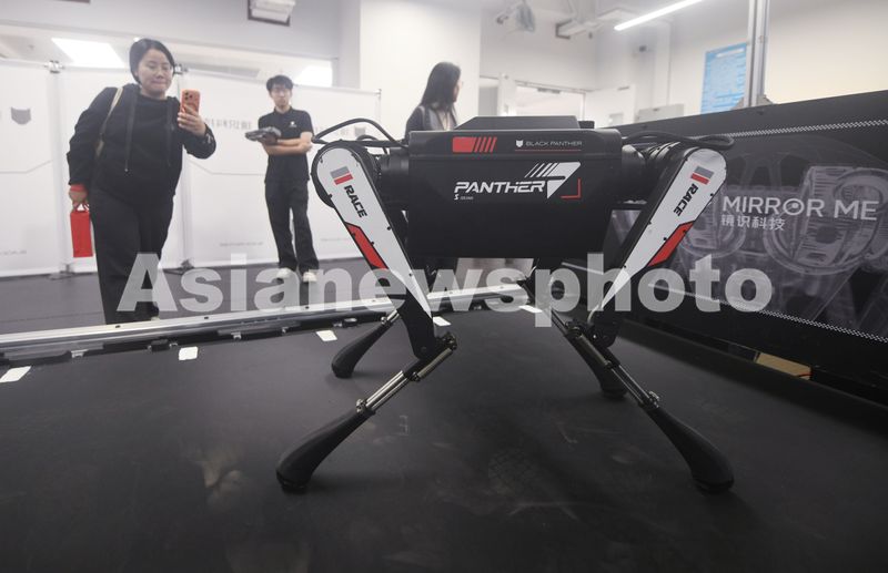 2025年11月18日,在浙大国际科创中心拍摄到的四足仿生机器人“黑豹2.0”。
