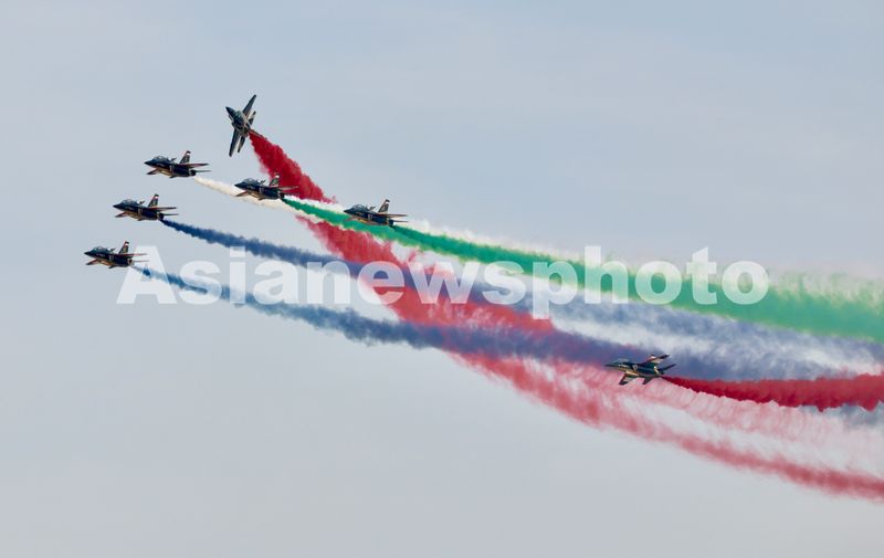 阿联酋骑士飞行表演队换装中国L-15猎鹰高级教练机亮相迪拜航展