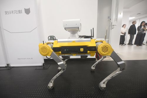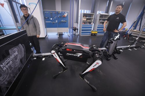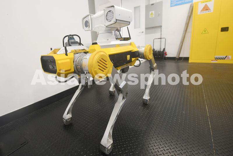 2025年11月18日,在浙大国际科创中心拍摄到的基于四足仿生机器人“黑豹2.0”开发的工业巡检机器狗。