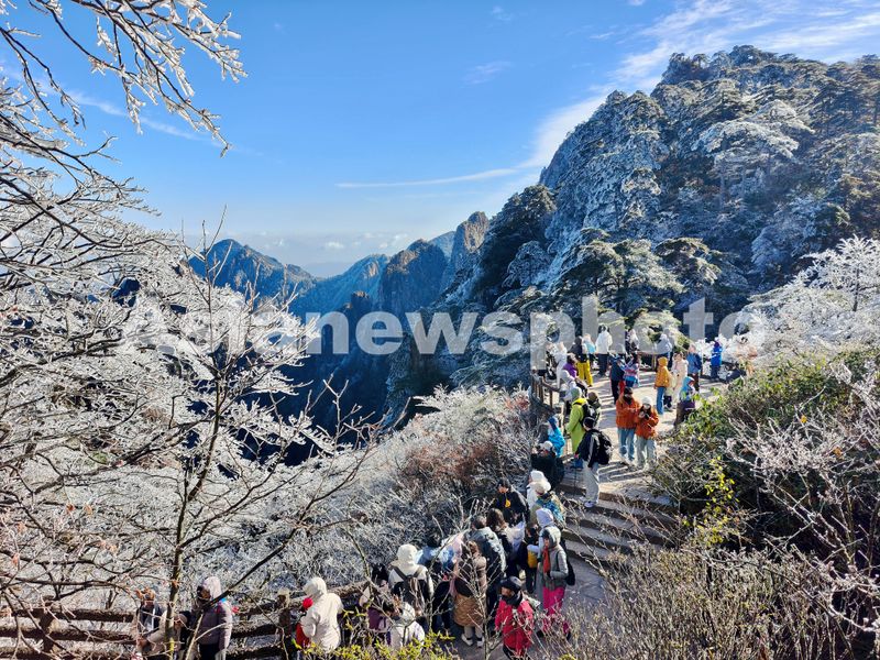 安徽黄山迎来今冬首场雾凇云海 查看组图