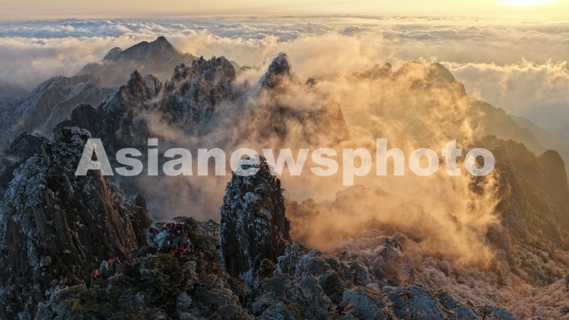 安徽黄山迎来今冬首场雾凇云海 查看组图