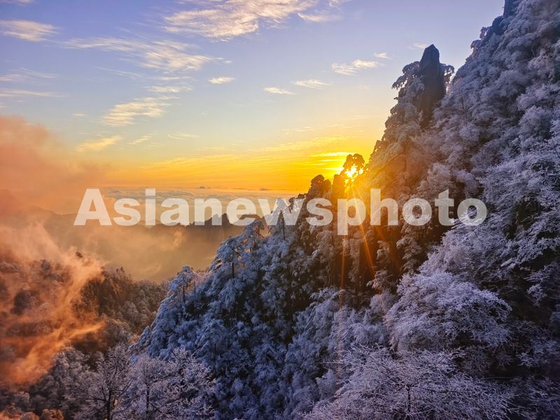 安徽黄山迎来今冬首场雾凇云海 查看组图